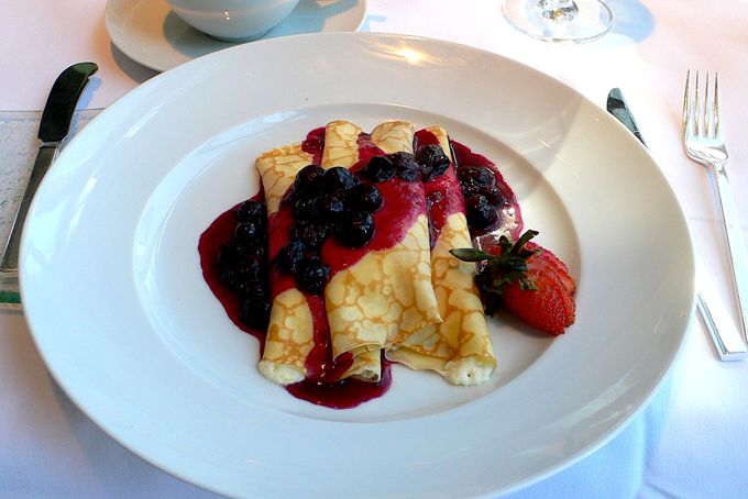 Søde crêpes bliver spist som dessert og morgenmad fyldt med sukker eller Nutella. De kan fyldes med sirup, flødeskum og is. De kan raffineres med flambering som Crêpes Suzette.