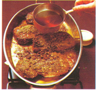 Stegepanden kan koges af med lidt rødvin og bouillon.