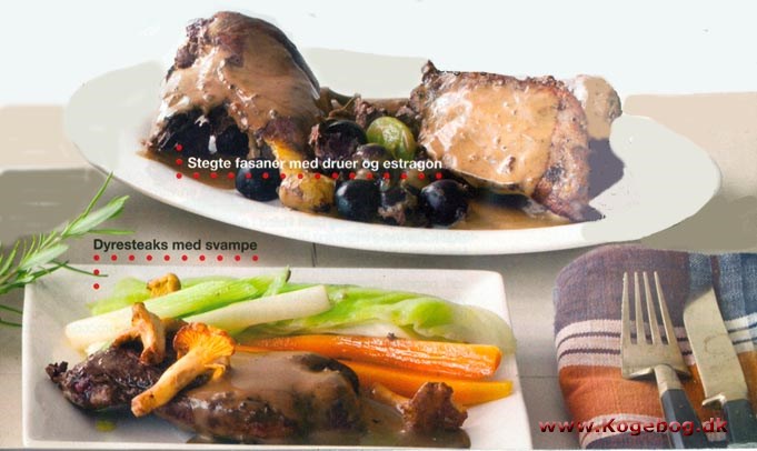 Skær fasanerne i halve ved serveringen og hæld lidt af saucen over.