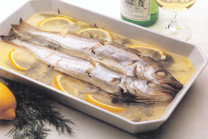 Ørred kan tilberedes på samme måde. (Se Bækørred).