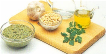 Hvidløg er nødvendigt, men pinjekernerne kan udelades eller