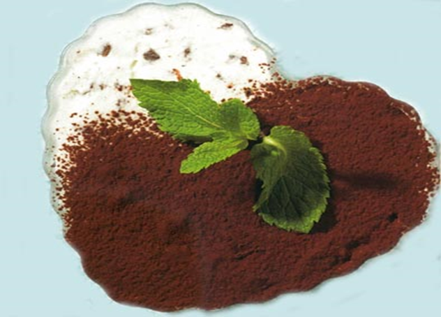 Drys med kakao og pynt med et par mynteblade ved serveringen.