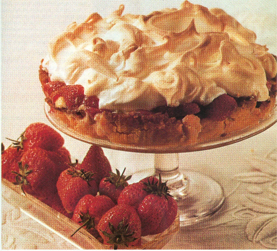 Dejlig kage af sød kagebund med et lag marengs på toppen, lagt sammen om vaniljecreme og friske jordbær. Marengsen er sprød på toppen, men blød indeni...