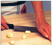 2. Knus hvidløget let med den flade side af en kokkekniv eller en trækølle.