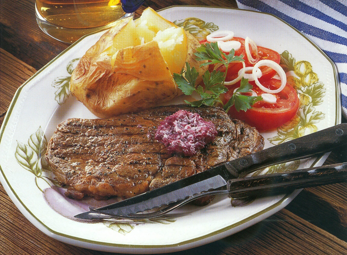 Grillet entrecôte med rødvinssmør