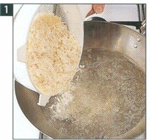 For at denne ret skal lykkes, er det vigtigt at anvende kolde, tørre ris, som ikke klæber.