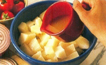 Når man laver kartoffelsalat, hælder man først en stærk dressing