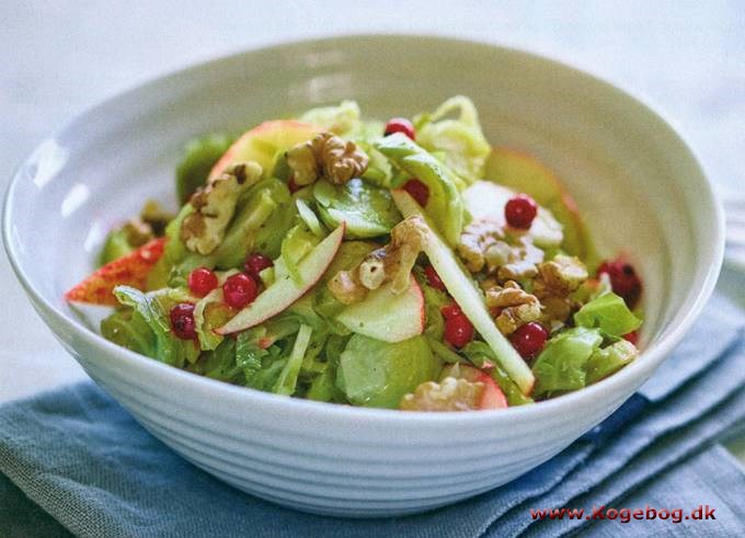 Rosenkålssalat med æbler, valnødder og tyttebær