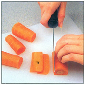 Trin 1: Skær gulerodsstykket i tynde skiver