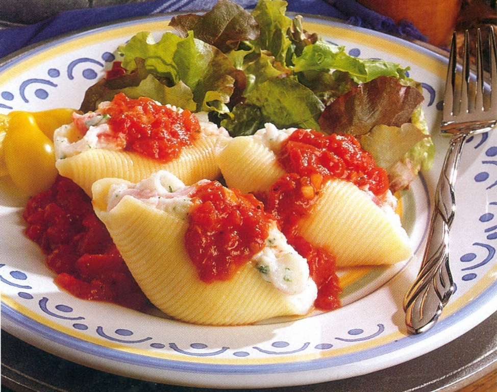 Store, fine pastasnegle kan du købe i de fleste supermarkeder. De er rigtig gode at fylde. Her er en virkelig lækker ret med pastasnegle, der er god netop nu!