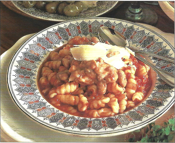 7. Vend gnocchien varsomt ind i saucen. Server det med parmesanostespåner.