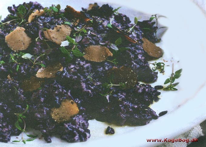 Server risottoen toppet med friskrevet trøffel, drys af frisk timian og dryp af