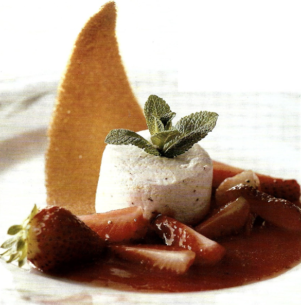 Giv friske jordbær til og pynt med lidt frisk mynte.