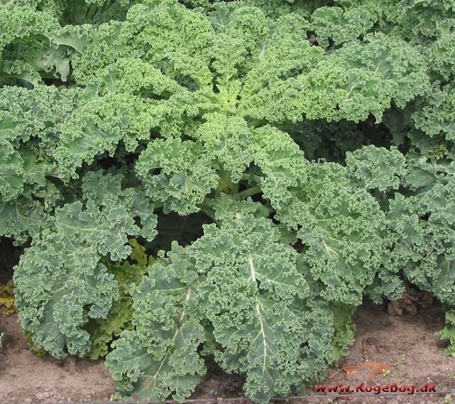 Det er en bladkål der ikke danner hoveder, men store, grønne og krusede blade