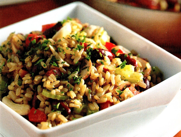 Lækker cremet risotto fyldt med bønner, peberfrugt, løg, bladselleri og champignon. En vidunderlig blanding af kidneybønner, cashewnødder og brune ris.