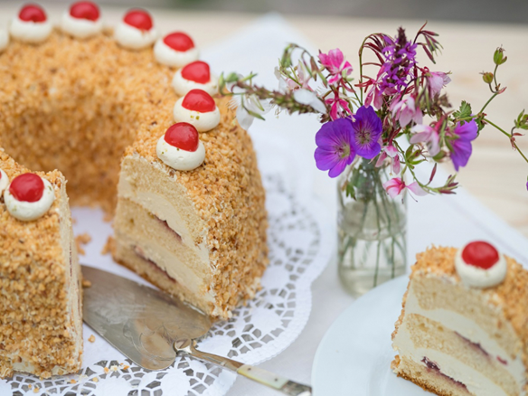 Smør-creme kage i Frankfurt stil - Sådan tilberedes denne lækre, traditionelle Frankfurt-kage. Den symboliserer en krone, gylden på siden og kirsebærjuveler