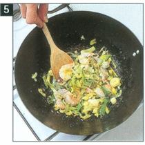 5. Kom rejerne i wokken eller panden og lynsteg dem i 2 min, eller til de er næsten gennemstegte.