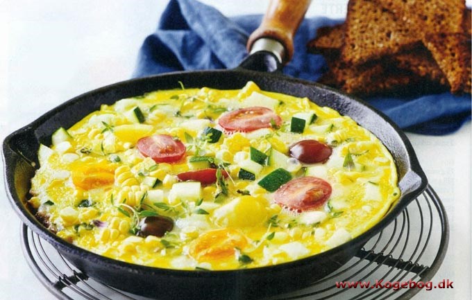 # Ingredienser til æggekage med squash og majs: