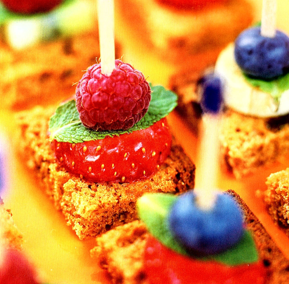Her får du lidt godt i flere spændende udgaver. Fx Ananaskanapéer med kanel, Brioche med jordbær,