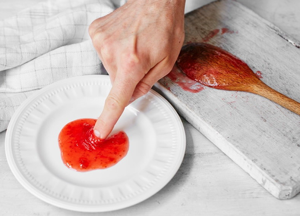 til at teste om din gelé, marmelade eller syltetøj vil sætte sig, når den er