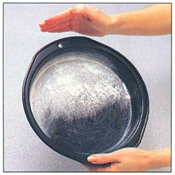 Vend formen og bank forsigtigt i bunden for at fjerne overskydende mel.