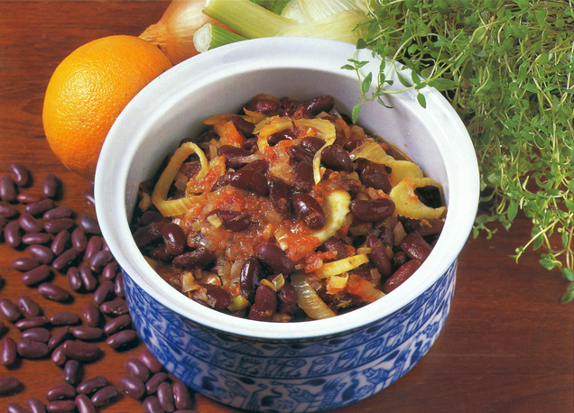 En bønnegryde med smag af både hvidløg og timian kombineret med appelsinens syrlige smag. Spændende! Det her er en virkelig lækker ret