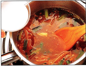 Opløs majsmelet i en smule vand og hæld det i saucen.