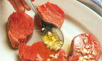 stryg hvidløget af og tør kødet let.