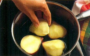 Læg de halverede pærer i lagen og lad dem koge møre ved