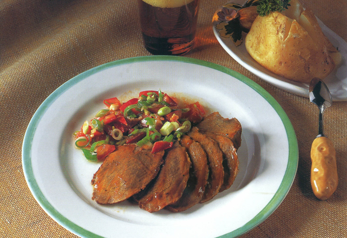 Fra det sydvestlige USA kommer ideen til denne steg, som krydres med chili og tomat. Her er en virkelig lækker ret med roastbeef, det er altid godt! Retten er nem