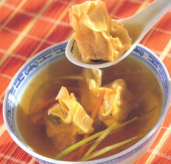 Tilsæt wontoner og lad suppen simre for svag varme i 2 min.