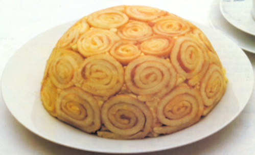 fyldt med en kold creme eller fromage og afkølet. Den menes at være opfundet i
