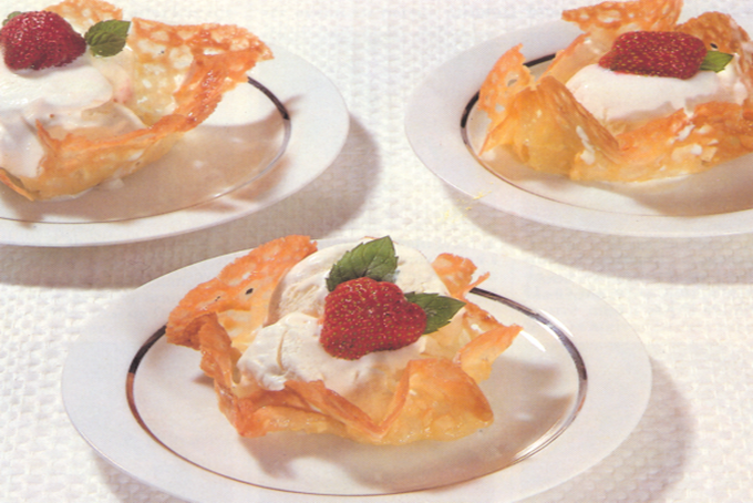 Tips: Kurvene fyldes med is, sorbet og/eller frugt.