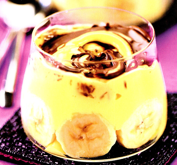 Her får du lidt sødt i flere spændende udgaver. Fx Bagt banancreme med kokos, Mascarpone-bananmousse, Banan-kakaoskum med is og chokoladespåner eller Karamelbananer med creme