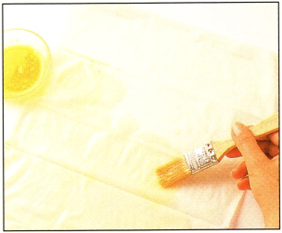 med et vådt viskestykke. Brug en bagepensel til at pensle en plade ad gangen