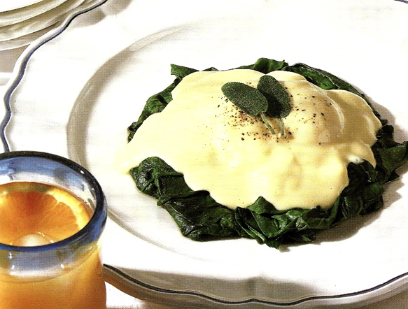En klassisk brunch-ret; dampet spinat, dækket med et pocheret æg og en cremet ostesauce. Brug altid helt friske æg til denne ret, det giver det bedste resultat.