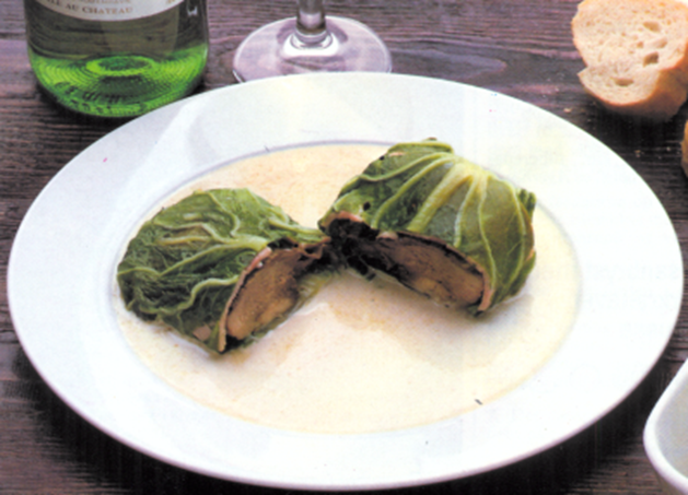 7. Pak hvert fasanbryst ind i kålblade og læg dem i et ovnfast fad.