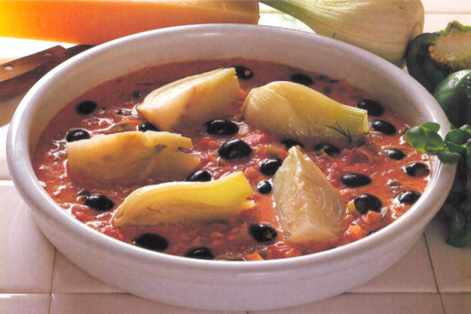 # Ingredienser til Fennikel med parmesan og olivensauce:
