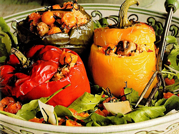 Her får du peberfrugter i flere spændende udgaver. Fx Peberfrugter med kødfyld, Peber og tomat med tofufyld, Asiatiske fyldte peberfrugter eller Fyldte grønsager