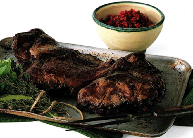 marineres kødet, som derefter grilles tæt indpakket i stanniol for at bevare det