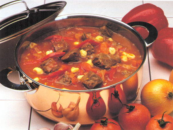 Tips: Den ungarske version af gullasch smager stærkt af paprika. Den spises uden brød eller kartofler, fordi dejærterne er en slags nudler, der mætter.
