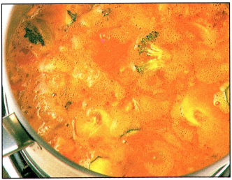 Retten simrer, når små bobler stiger op til madens overflade. Hvis der er for meget væde, fjernes låget, og retten simrer, indtil væden er reduceret.