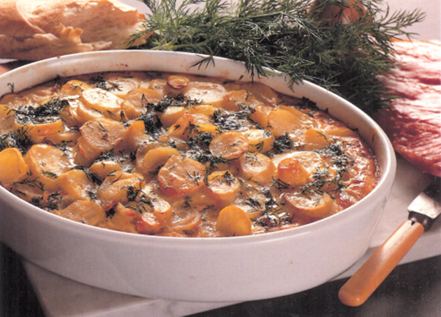 Aftensmad Hovedret. Arbejdstid: ½ time Kogetid, kartofler: ca 20 min. Ovntid: ca 40 min. Middelsvær at lave. Høj pris. 4 personer.