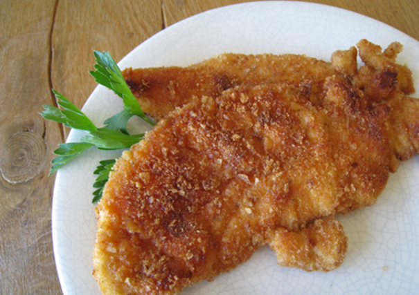 Tips: Vend kun schnitzlerne en gang, så holder paneringen bedst.