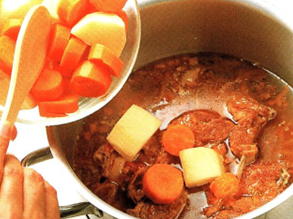 Tilsæt gulerødder og kartofler og lad det simre i endnu en
