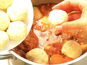 Varm retten op til kogepunktet, lige inden bollerne