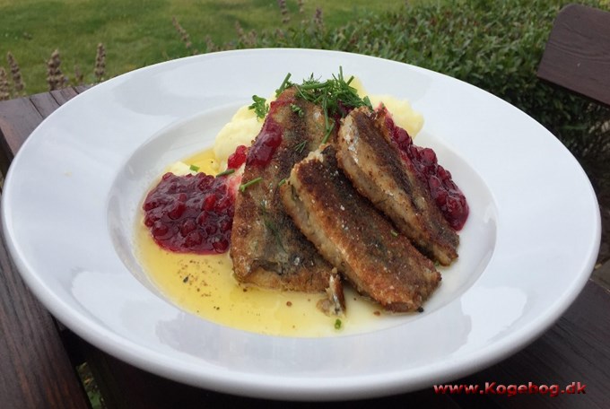 kartofler og smørsauce samt tyttebærmarmelade, er en klassiker og så er