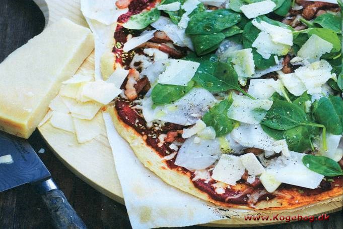 4 personer. Er I kun to Pizza med jordskokker og spinat, så halver opskriften. Arbejdstid: 20 min. Bagetid: ca. 20 min.