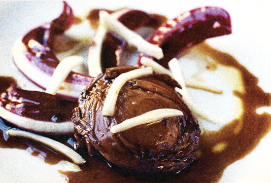 En lækker, elegant og fyldig salat med rødvins-pocherede æg og