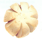 6. Før servering skæres smørruller i runde skiver med kniven.